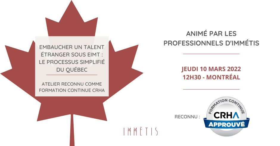 Retrouvez Immétis le jeudi 10 mars 2022 à 12h30 (heure de Montréal) dans un atelier permettant de comprendre le processus simplifié du Québec !