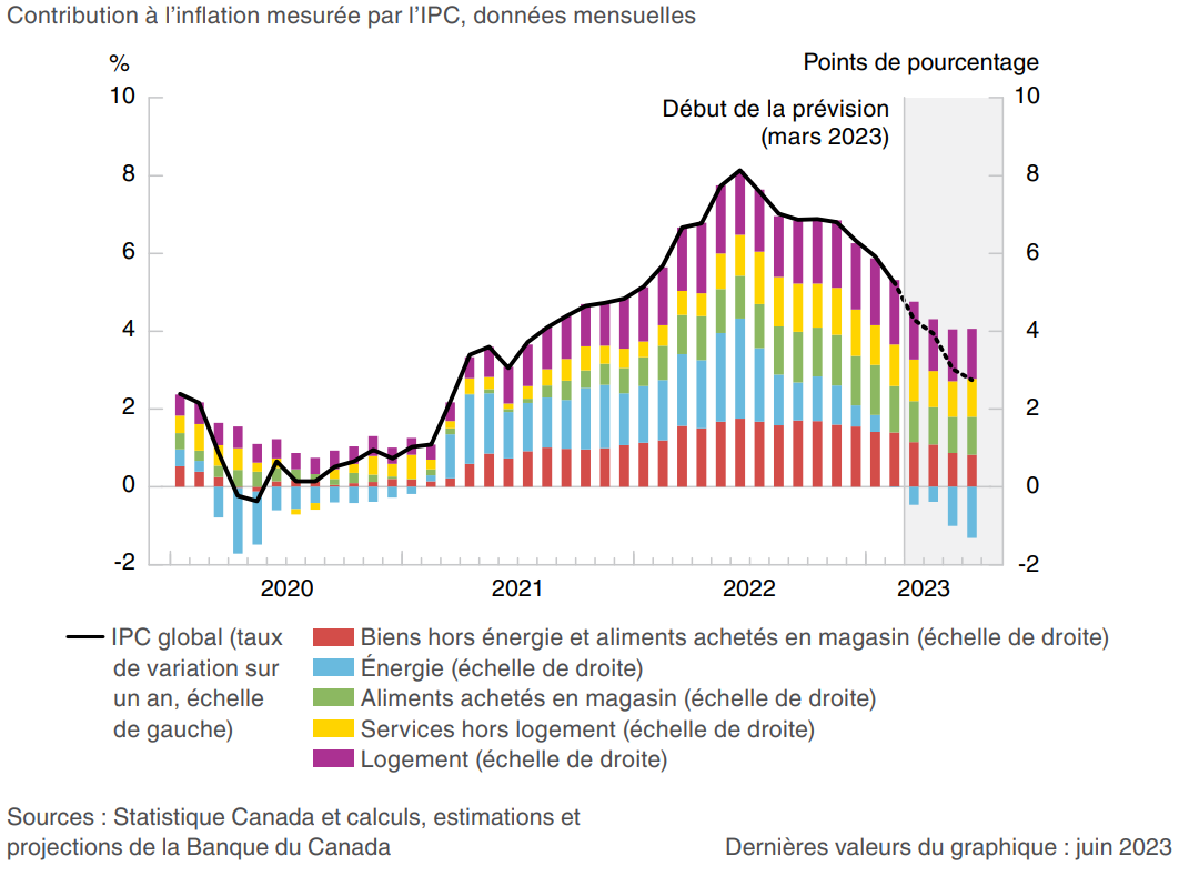 Les derniers chiffres de l’inflation publiés la semaine dernière par Statistique Canada ont confirmé une fois de plus son reflux. L’inflation a atteint 4,3% en variation annuelle en mars 2023, contre 5,2% en février. Il s’agit ainsi du niveau le plus faible depuis août 2021. Fait marquant, l’inflation alimentaire (9,7%), toujours supérieure à l’inflation globale (4,3%), a reculé par rapport à février (10,6%) pour un deuxième mois consécutif (11,4% en janvier) et passe pour la première fois depuis août 2022 en-dessous de la barre symbolique de 10% (10,8% en août 2022). Selon le rapport d’avril de la Banque du Canada sur la politique monétaire, l’atténuation des pressions sur les coûts des intrants agricoles depuis le second semestre 2022 (toujours 30% de plus cher qu’avant la guerre en Ukraine mais –50% par rapport à leur pic au premier semestre 2022) laisse croire que l’inflation alimentaire pourrait continuer son reflux dans les mois à venir. La Banque centrale et les experts estiment ainsi que l’inflation alimentaire devrait atteindre son pic au cours du second semestre 2023 pour ensuite graduellement refluer entre 5% et 7% d’ici la fin de l’année. Malgré ces nouvelles encourageantes, l’inflation alimentaire reste au cœur des préoccupations du gouvernement fédéral, qui avait annoncé dans son budget fin mars le prolongement d’une compensation pour la TVA payée sur les produits alimentaires afin de soutenir les plus modestes. Dans le même temps, les profits des distributeurs sont en augmentation : le distributeur Metro a révélé la semaine dernière une augmentation de 10,4% de ses profits, continuant ainsi à entretenir le débat public sur la cupidité supposée des distributeurs, qui profiteraient de leur pouvoir de marché pour augmenter les prix. A cet égard, le Bureau de la concurrence du Canada s’est d’ailleurs saisi du dossier et devrait rendre ses conclusions fin juin.
