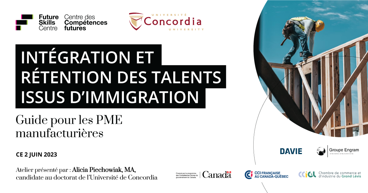 Le vendredi 2 juin de 9h30 à 11h30, participez à un atelier gratuit organisé par la Chambre de commerce et d'Industrie du Grand Lévis en collaboration avec la CCI Française au Canada, branche de Québec, sur l'intégration et la rétention des talents issus d'immigration, animé par Alicia Piechowiak