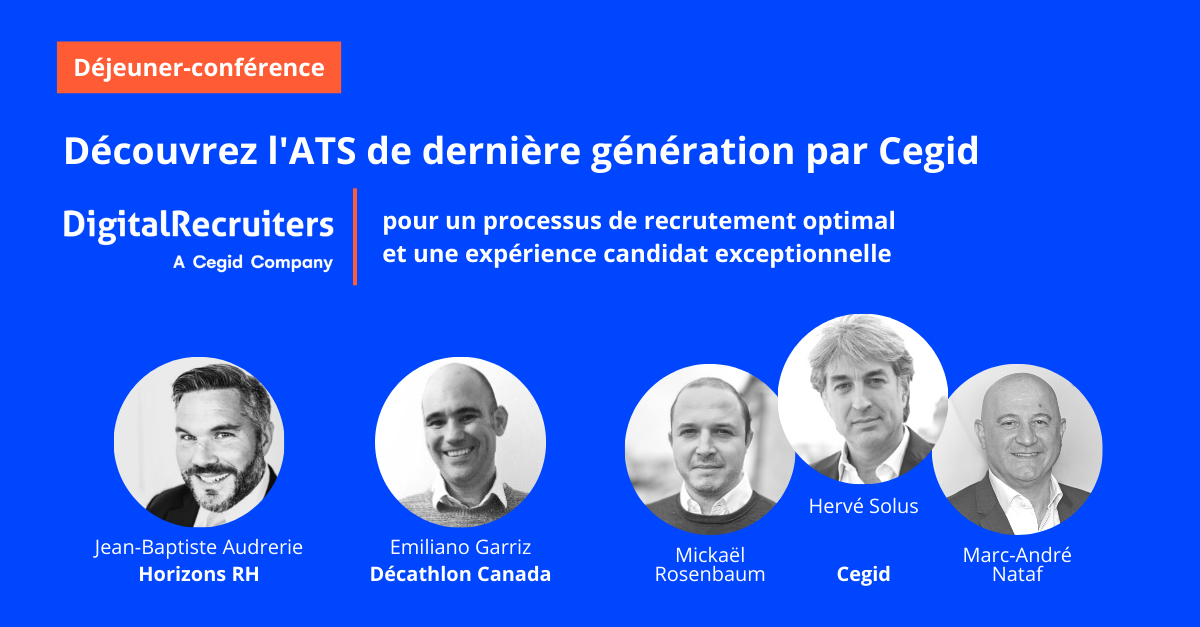 - Hervé Solus, co-fondateur de DigitalRecruiters, ainsi que Marc-André Nataf et Mickaël Rosenbaum (Cegid) vous expliqueront comment DigitalRecruiters peut vous aider à optimiser votre processus et réduire vos délais et vos coûts de recrutement.