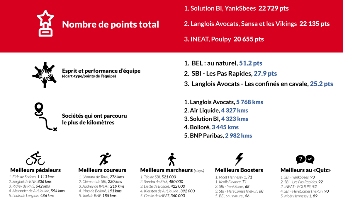 Particulièrement adaptée à cette période de confinement/dé-confinement liée au COVID, cette action individuelle physique mobilise actuellement plus de 600 collaborateurs, 150 équipe de près de 50 entreprises différentes appartenant au réseau de la CCI Française au Canada. Bravo pour votre engagement. Fin du Challenge et annonce finale le 22 juin à midi.