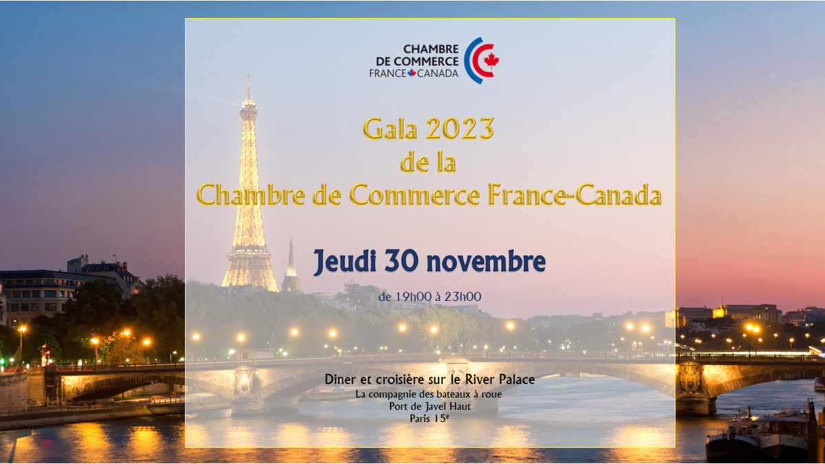 La Chambre de Commerce France-Canada organise le 30 Novembre 2023 un Gala sur la Seine au cours duquel seront décernés des prix de reconnaissance pour les sociétés Canadiennes en France ou Française au Canada.