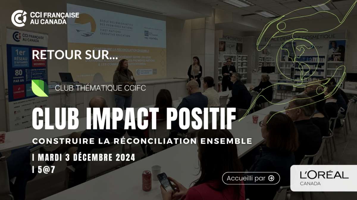 Ce mardi 3 décembre, la CCI Française au Canada a organisé une session du Club Impact Positif sur la réconciliation avec les Premières Nations.