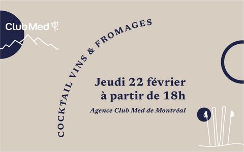 L'agence Club Med de Montréal vous invite jeudi 22 février à partir de 18h pour un cocktail vins et fromages !
