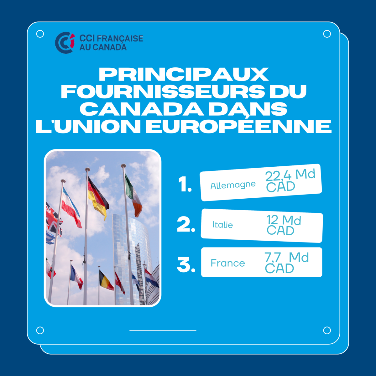 À l’unisson de la tendance mondiale, le commerce extérieur canadien avait vigoureusement rebondi en 2021 (+16,7%), grâce notamment au secteur #énergétique, avec à la clef le 1er excédent commercial depuis 2014 (15,3 Md CAD - 10,5 Md€).