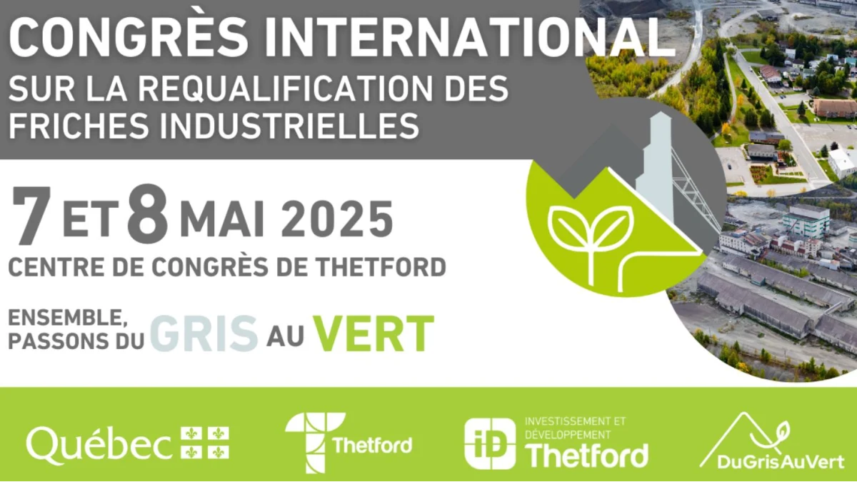 Participez à ce premier congrès international sur la requalification des friches industrielles à Thetford Mines les 7 et 8 mai 2025 prochains !