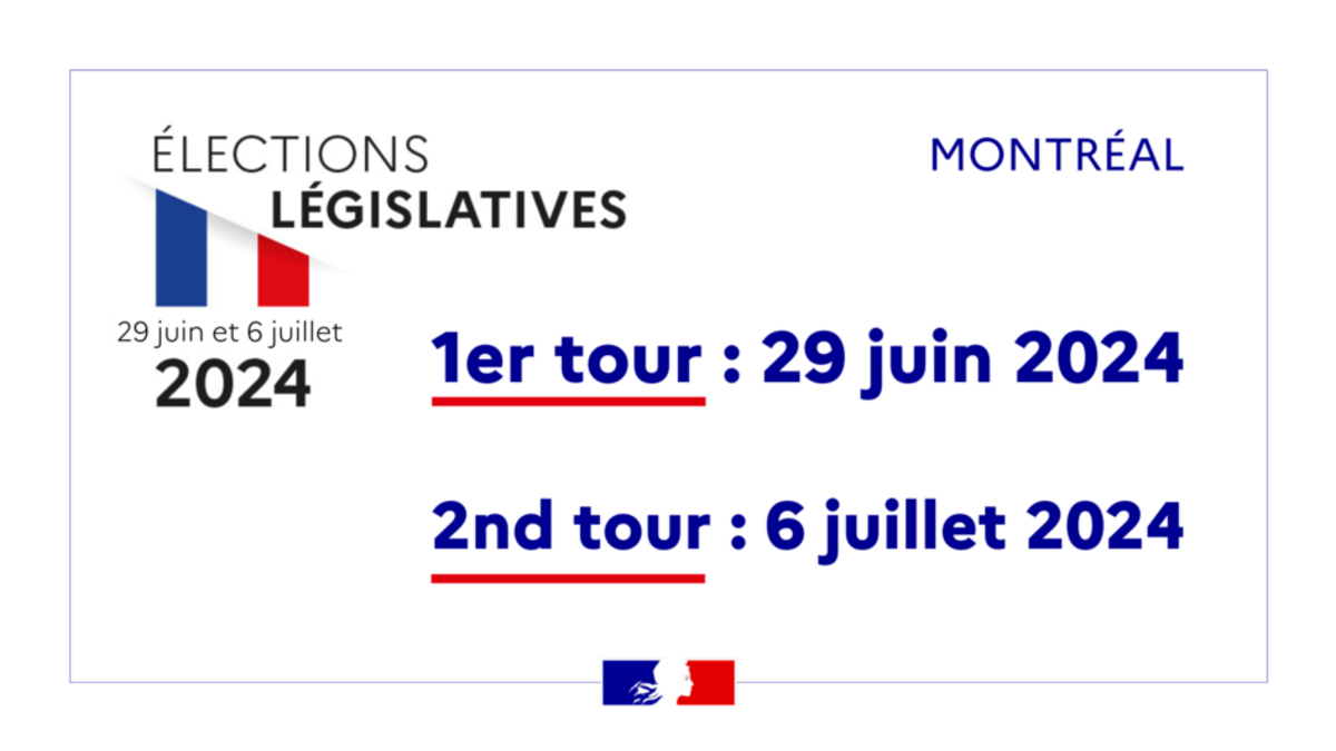 À Montréal, le 1er tour des élections législatives se tiendra le samedi 29 juin 2024, et le 2nd tour aura lieu le samedi 6 juillet 2024.