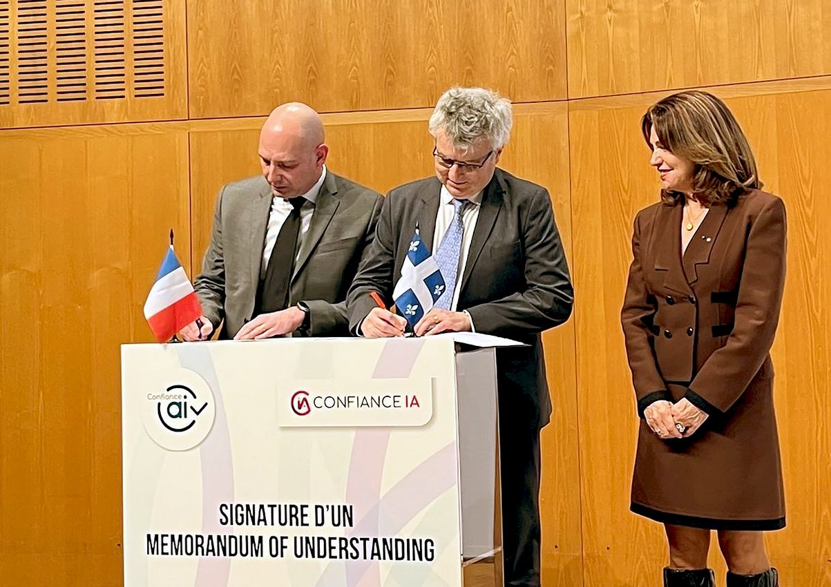 Cette signature d’un MoU (Memorandum of Understanding), traduit les collaborations développées ces dernières années entre les deux structures, dans le cadre des programmes Confiance.IA et Confiance.AI, respectivement québécois et français. Cette signature vise à renforcer les liens entre les deux écosystèmes dans les prochaines années.