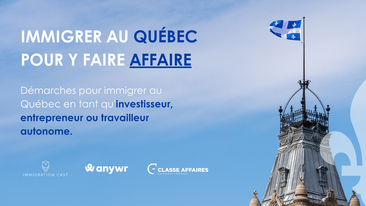 Vous êtes entrepreneur, investisseur ou travailleur autonome et visez le Québec ? Anywr Group en collaboration avec Classe Affaires et Immigration CAST, propose un webinaire exclusif pour sécuriser votre projet d'expatriation. Cette session offre une approche intégrée unique combinant stratégie d’affaires et conformité migratoire.