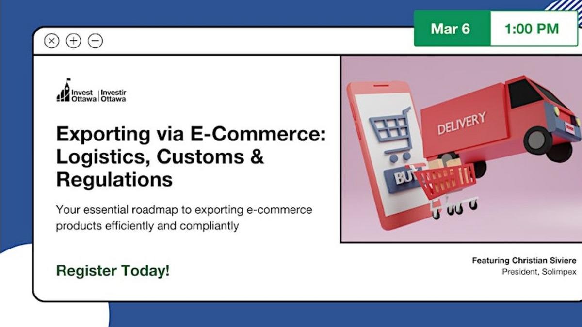 Atelier en personne le 6 mars : apprenez à exporter via le e-commerce, maîtrisez douanes, logistique et conformité internationale. Inscrivez-vous !