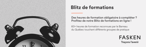 Dès aujourd’hui, plus de 60 heures de formations admissibles au Barreau du Québec sont mises à votre disposition sur une variété de sujets et touchant différents groupes de pratique.
