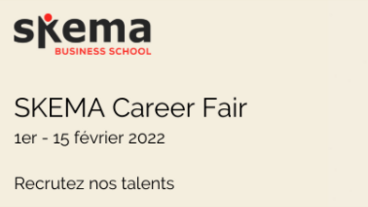 SKEMA Business School a le plaisir de vous inviter à son prochain forum de recrutement organisé du 1er au 15 février 2022 sous format digital.