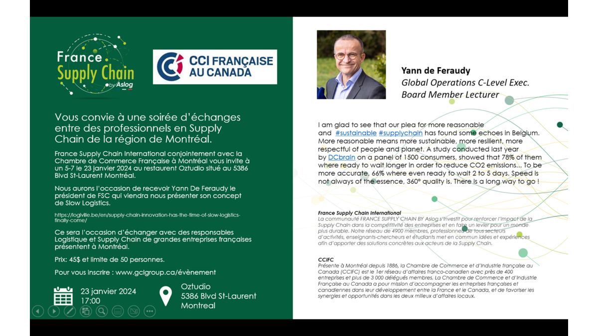 Ce sera l'occasion d'échanger avec des responsables Logistique et Supply chain de grandes entreprises françaises présentent à Montréal.