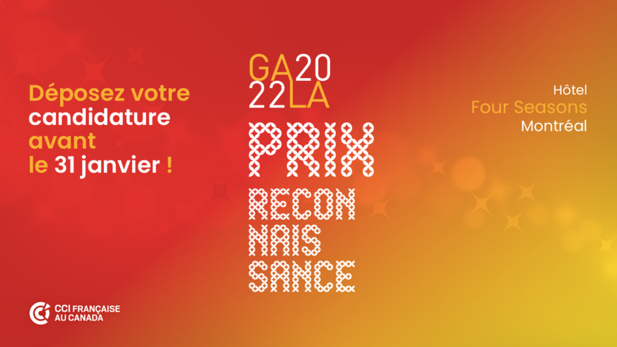 Lors de notre Gala annuel Prix de Reconnaissance 2022, sous le haut patronage des Ambassades de France au Canada et du Canada en France, 6 entreprises seront récompensées pour s’être distinguées dans différents domaines.