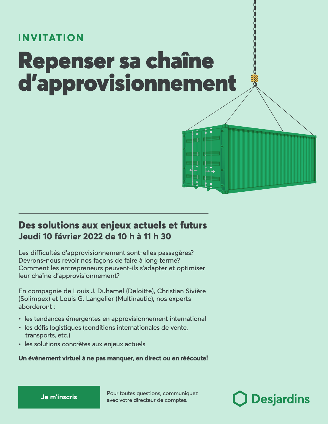 Invitation webinaire - Repenser sa chaîne d'approvisionnement, par Desjardins