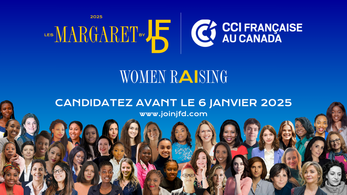 La CCI Française au Canada est fière de poursuivre son engagement aux côtés de JFD et son prix #lesMargaret qui récompensera pour sa 13e promotion “Women rAIsing", les futures championnes de l'Intelligence Artificielle. Une opportunité unique de bénéficier du programme d'accélération de croissance JFD, d'une valeur d'1 million d'euros pendant 1 an.