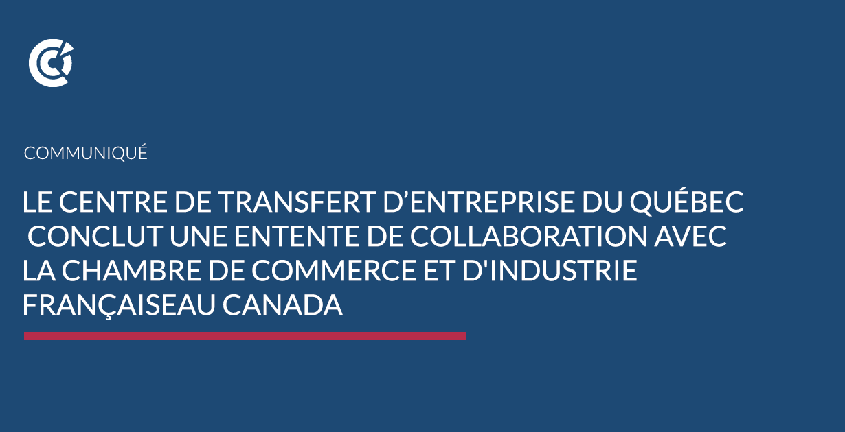 LE CENTRE DE TRANSFERT D’ENTREPRISE DU QUÉBEC CONCLUT UNE ENTENTE DE COLLABORATION AVEC LA CHAMBRE DE COMMERCE ET D'INDUSTRIE FRANÇAISE AU CANADA