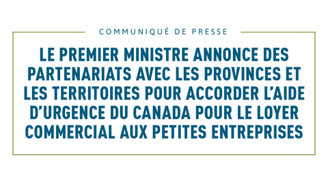 Aujourd’hui, le premier ministre Justin Trudeau a annoncé que le gouvernement fédéral a conclu une entente de principe avec toutes les provinces et tous les territoires pour mettre en œuvre l’Aide d’urgence du Canada pour le loyer commercial (AUCLC) destinée aux petites entreprises. Ce programme réduira de 75 % les loyers des petites entreprises touchées par la COVID-19.