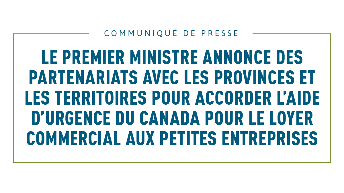 Le premier ministre annonce des partenariats avec les provinces et les territoires pour accorder l’Aide d’urgence du Canada pour le loyer commercial aux petites entreprises