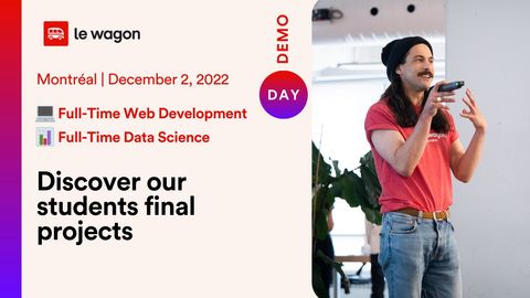 Participez au prochain Demo Day organisée par Le Wagon, le 2 décembre ! L'occasion de voir concrètement les compétences des gradués du Wagon !