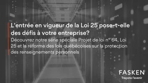 L’équipe de Fasken met à votre disposition une série spéciale sur le Projet de loi n° 64, la Loi 25 et la réforme des lois québécoises sur la protection des renseignements personnels.