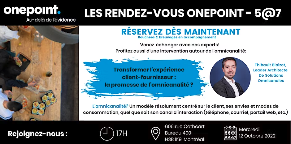 Transformer l'expérience client-fournisseur : la promesse de l'omnicanalité ? Participez au prochain événement de réseautage organisé par Onepoint !