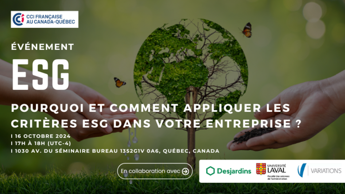 La CCI Française Canada-Québec vous invite à une conférence exceptionnelle qui vous permettra de mieux comprendre et appréhender l’importance des critères ESG dans le contexte économique actuel.