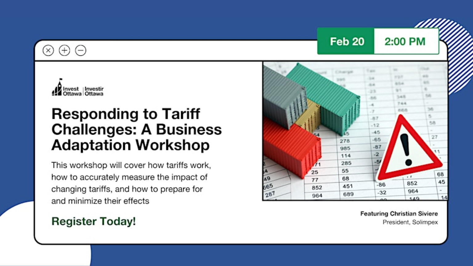 Join a webinar where we will explore the critical role tariffs play in global trade and their impact on businesses, an event with Invest Ottawa.