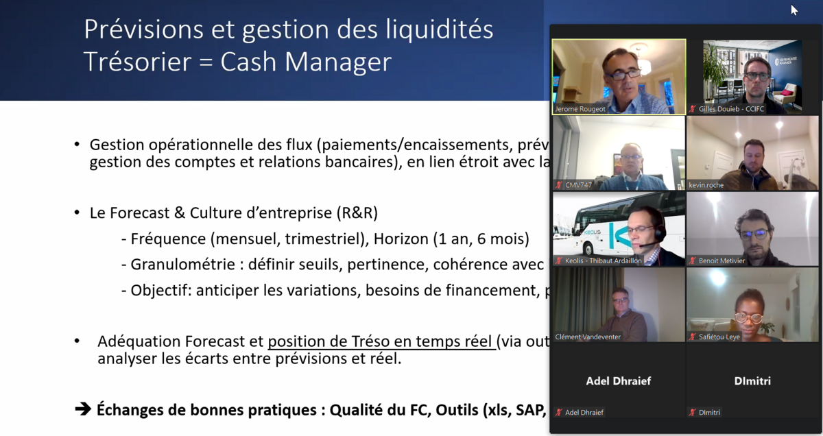 Le sujet de la réunion était le « Zoom sur la trésorerie », et a été abordé par Jérôme Rougeot, expert du sujet.