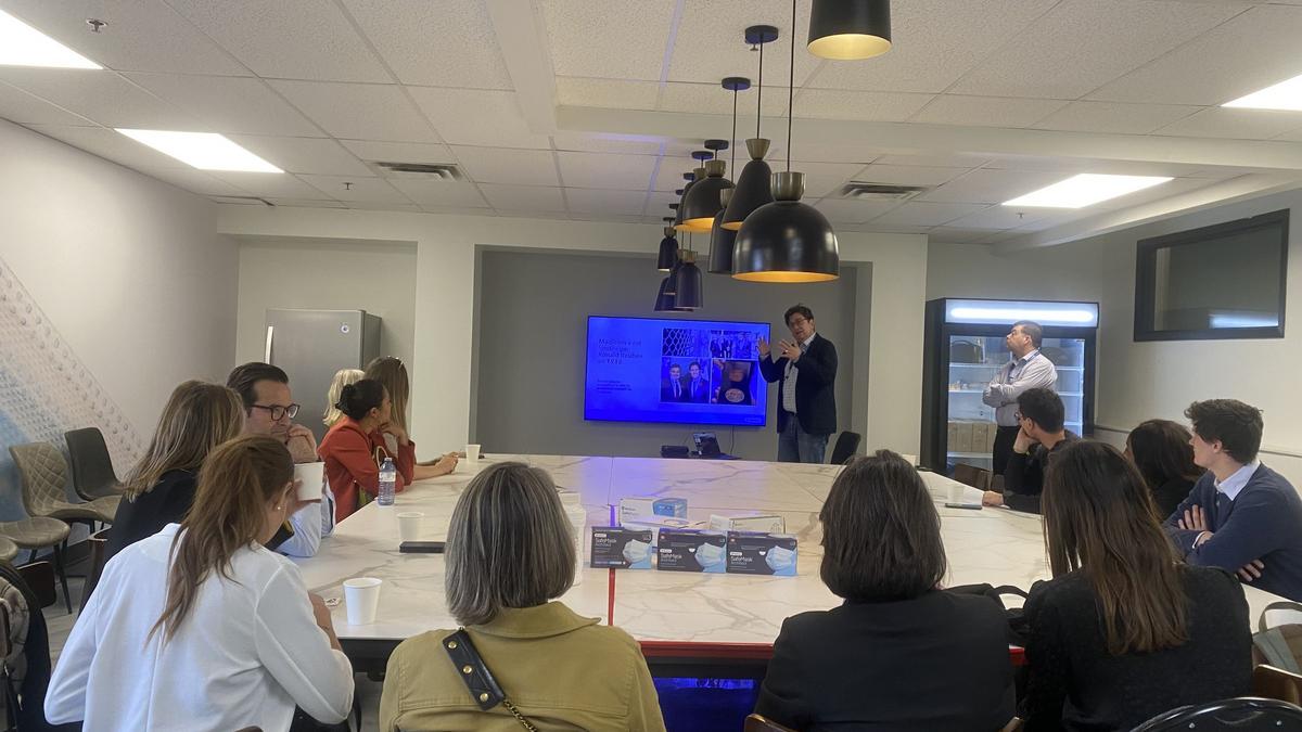 Pour finir cette journée, notre cohorte a pu participer à un cocktail de réseautage, accueilli par CGI, en présence de notre Club CEO, qui a réuni plus de 60 personnes. L'occasion pour nos participants d'échanger avec les entreprises de l'écosystème d'innovation du Grand Montréal !
