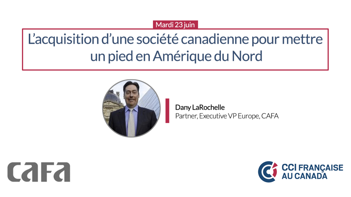 Acquérir une société canadienne est une stratégie permettant d’accélérer son implantation sur le sol canadien. Le Québec en particulier est composé d’une multitude de PME et le ‘repreuneuriat’ est un axe fort et pourtant méconnu. Quelles sont les tendances, les opportunités et les écueils à éviter ? La CCI française vous propose un décryptage, en partenariat avec CAFA, société spécialisée en fusions & acquisitions, financement et conseil.