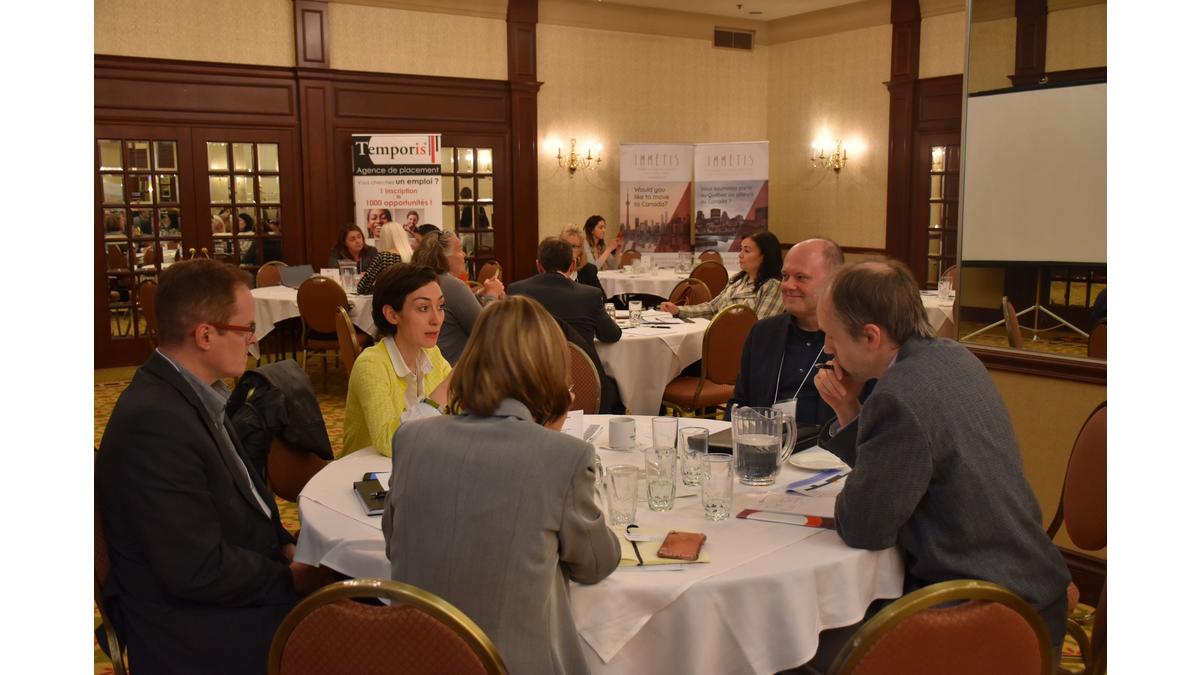 La CCI Française au Canada a reconduit avec succès l’édition du Business Dating. Au cours de cette demi-journée, les experts, répartis sur 10 tables, rencontrent par tranche de 30 minutes jusqu’à 5 groupes de 2 à 10 personnes et échangent autour d’une thématique précise. Cet évènement est l’occasion pour les participants d’approfondir plus précisément sur des problématiques personnelles B to B et pour les experts de développer de nouveaux contacts d’affaires.