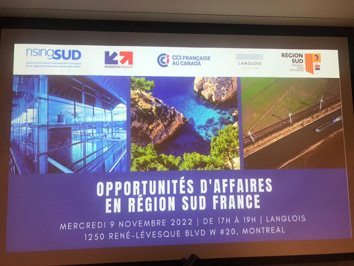 En collaboration avec la Région Sud - Provence-Alpes-Côte d’Azur, risingSUD et Business France, la CCI Française au Canada a regroupé autour d'un très bel événement de réseautage, les dirigeants Québécois et Canadiens afin de découvrir l’écosystème dynamique de la région Sud France ainsi que les opportunités de cette région !