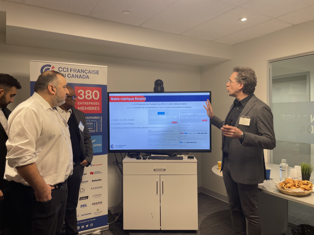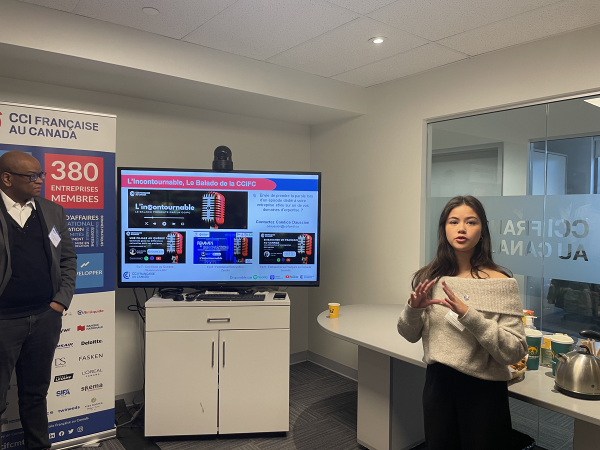 L'équipe de la CCI Française au Canada a présenté à ses membres les outils mis à leur disposition pour faire rayonner leurs entreprises au sein du réseau d'affaires : l'application #CCIFIConnect, le balado "L'incontournable", Le Transatlantique - L'accélérateur de la CCIFC ainsi que les événements à venir tels que les Clubs, les réseautages, le cocktail de la nouvelle année 2024 ou encore le Gala de Reconnaissance 2024.
