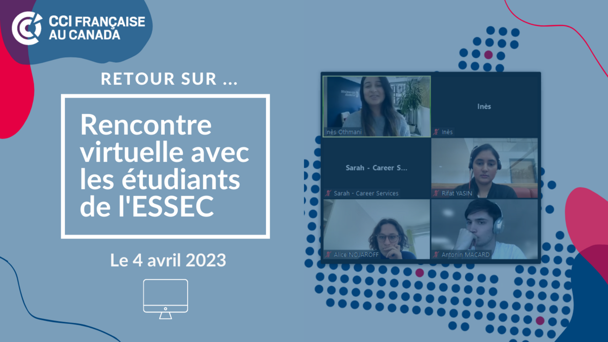 Le 4 avril 2023, la CCI française au Canada a échangé avec les étudiants de l'ESSEC, pour une découverte virtuelle du panorama des affaires au Canada!