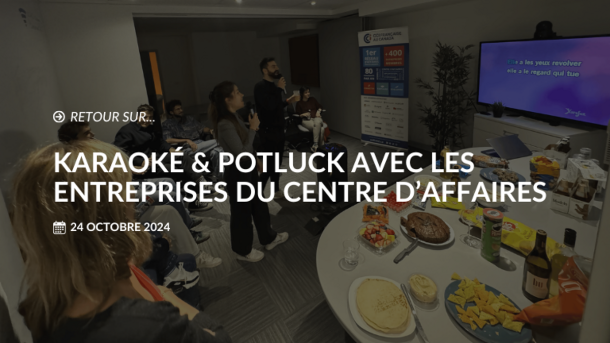 Le jeudi 24 octobre, la CCI Française au Canada a eu le plaisir d'organiser une soirée karaoké et potluck, réunissant les entreprises de son centre d'affaires pour un moment convivial et festif.