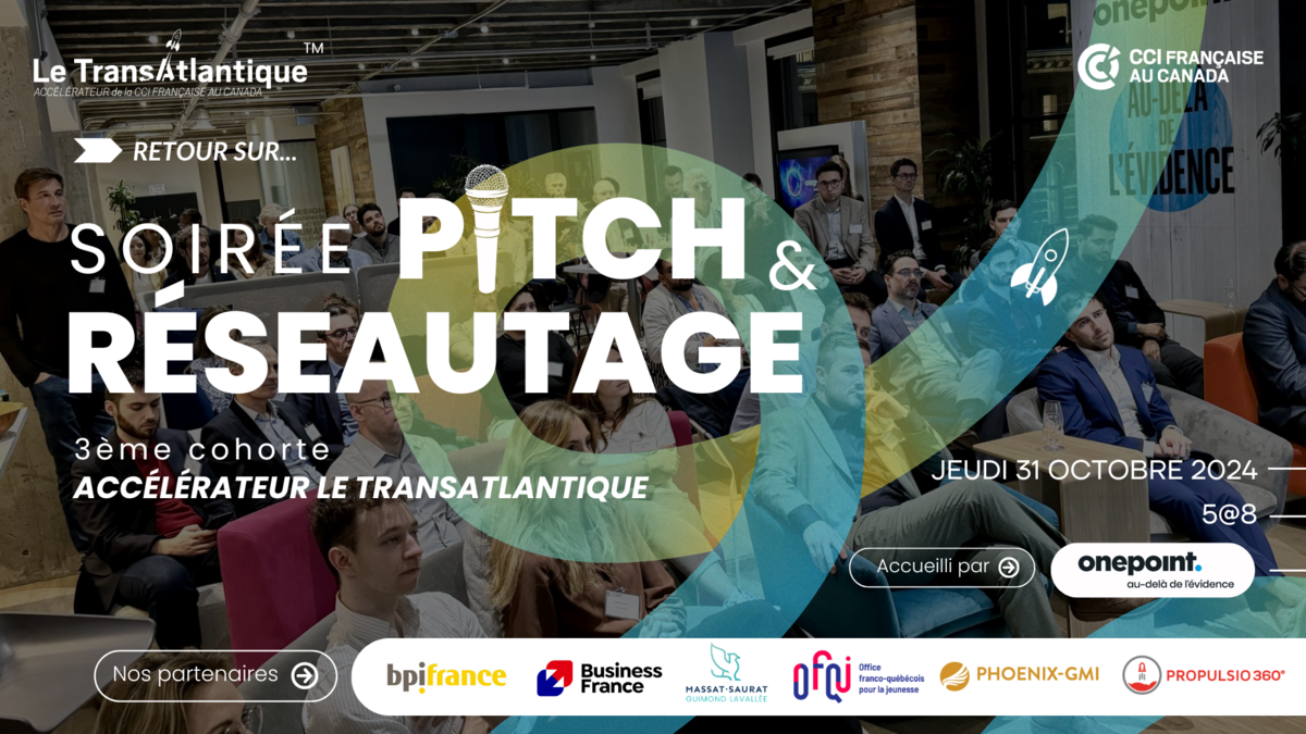 Ce jeudi 31 octobre, l’Accélérateur bilatéral de la CCI Française au Canada, Le Transatlantique, a eu le plaisir d'organiser la soirée Pitch & Réseautage pour clôturer la 3ᵉ cohorte.
