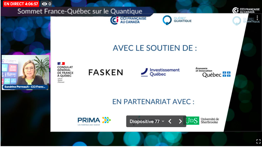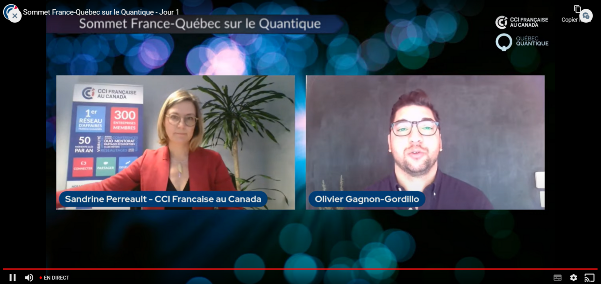 Dans la continuité de notre volonté d’engager les sujets stratégiques de demain, la CCI française au Canada est fière d'avoir organisé le Premier Sommet France-Québec sur le Quantique, les 20 et 21 janvier 2022, en collaboration avec Québec Quantique. Nous avons réuni les maillons de la chaîne de la recherche et développement de l’écosystème quantique franco-québécois. À travers ce Sommet, l'ambition principale était d'initier les échanges entre la France et le Québec au sujet du quantique et de renforcer les coopérations entre les deux territoires dans ce domaine.