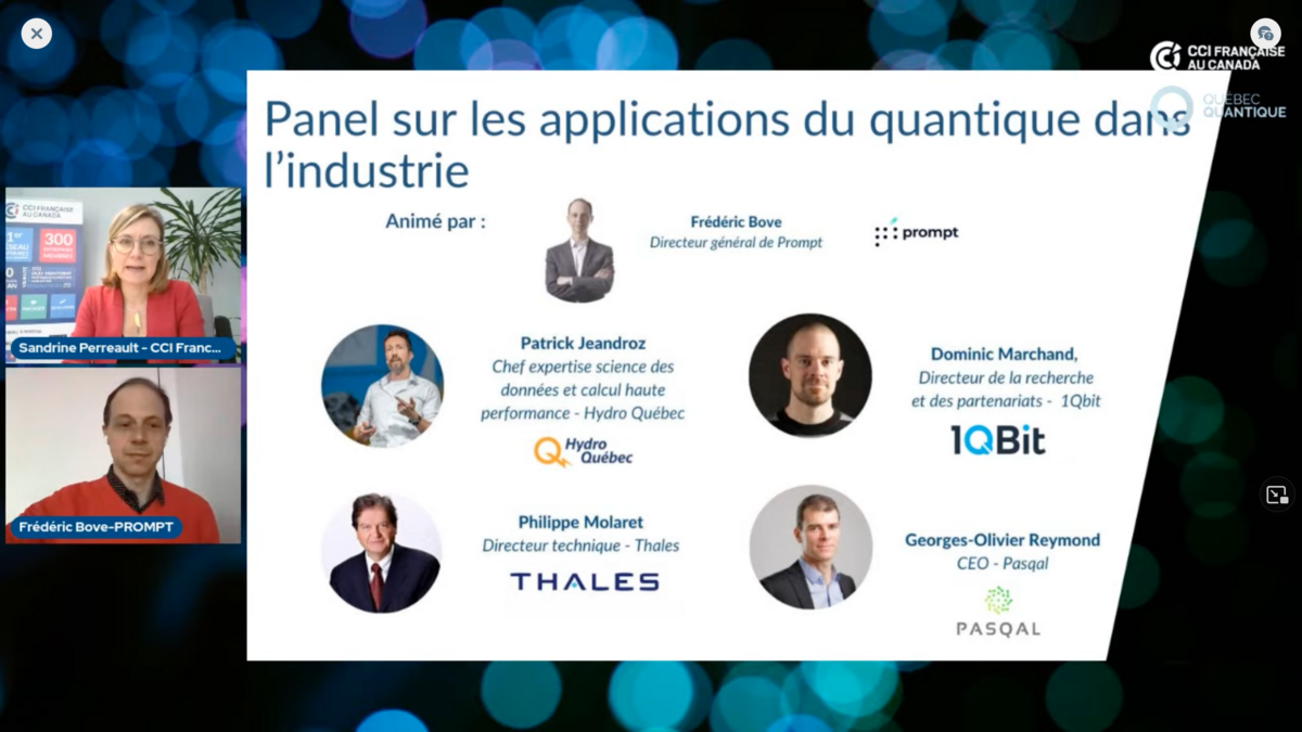 Philippe Molaret, directeur technique pour Thales, Dominic Marchand, chef de la recherche et des partenariats chez l’entreprise canadienne, 1Qbit, Georges-Olivier Reymond, Président de Pasqal et Patrick Jeandroz, chef pour l’expertise en science des données et calcul haute performance pour Hydro-Québec, nous ont livré une conférence passionnante au sujet de l’application des technologies quantiques au monde réel du point de vue des industries