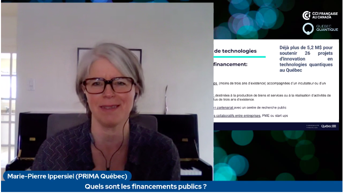 Marie-Pierre Ippersiel, Présidente et directrice générale de Prima Québec, a détaillé les investissements publics en place. Plus de 5,2 M$ ont été investis pour soutenir 26 projets d'innovation en technologies quantiques au Québec pour des start ups, PME et projets collaboratifs.