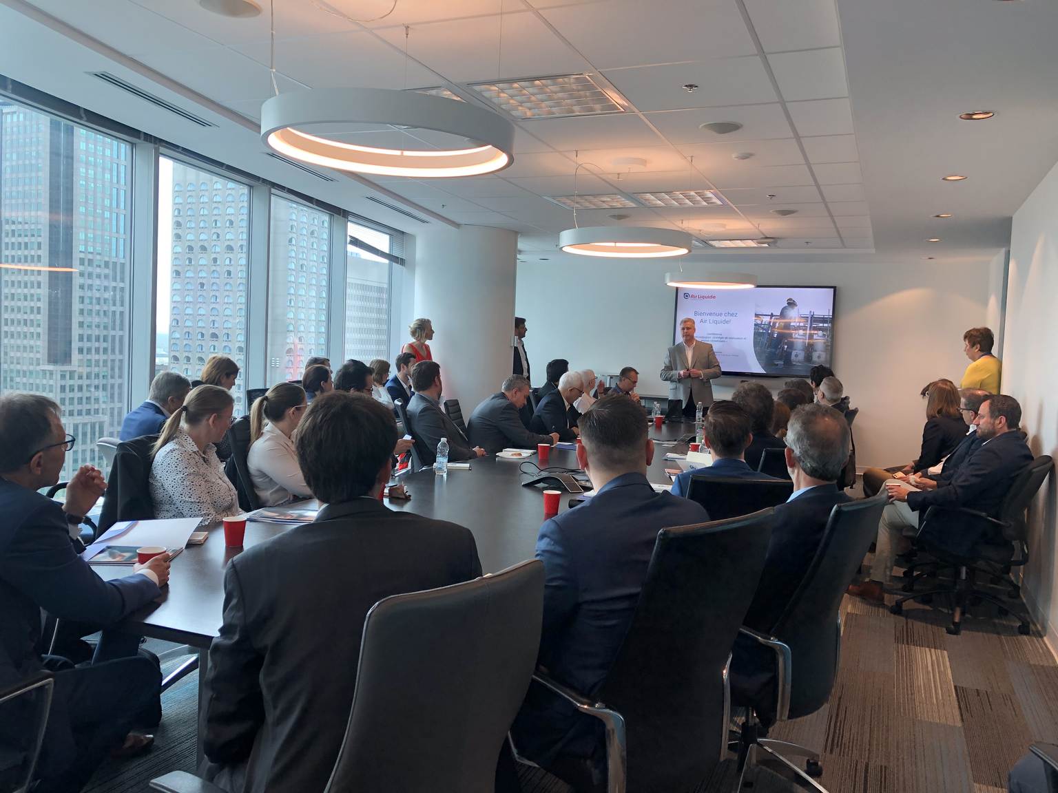 Bertrand Masselot, Président et chef de la direction de Air Liquide au Canada, est intervenu jeudi 23 mai sur la stratégie de croissance d'Air Liquide dans un contexte aux enjeux climatiques changeants. Un évènement ouvert à une quarantaine de personnes qui a permis d'en savoir plus sur les nombreuses activités d'Air Liquide et de comprendre le groupe dans sa globalité.