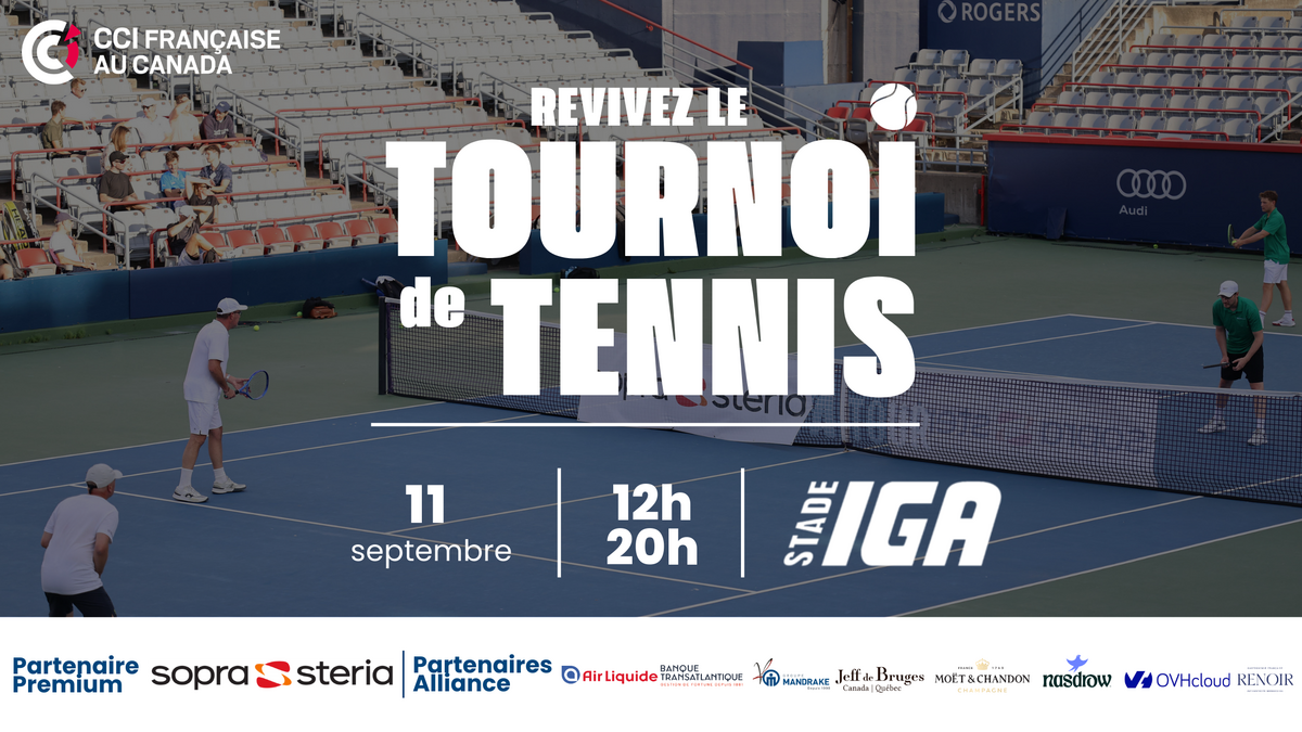 Hier, 60 participant.e.s se sont retrouvé.e.s au Stade IGA pour la 8ᵉ édition du Tournoi de tennis de la CCI française au Canada qui témoignage l’enthousiasme de la communauté d’affaires franco-canadienne pour cet événement.