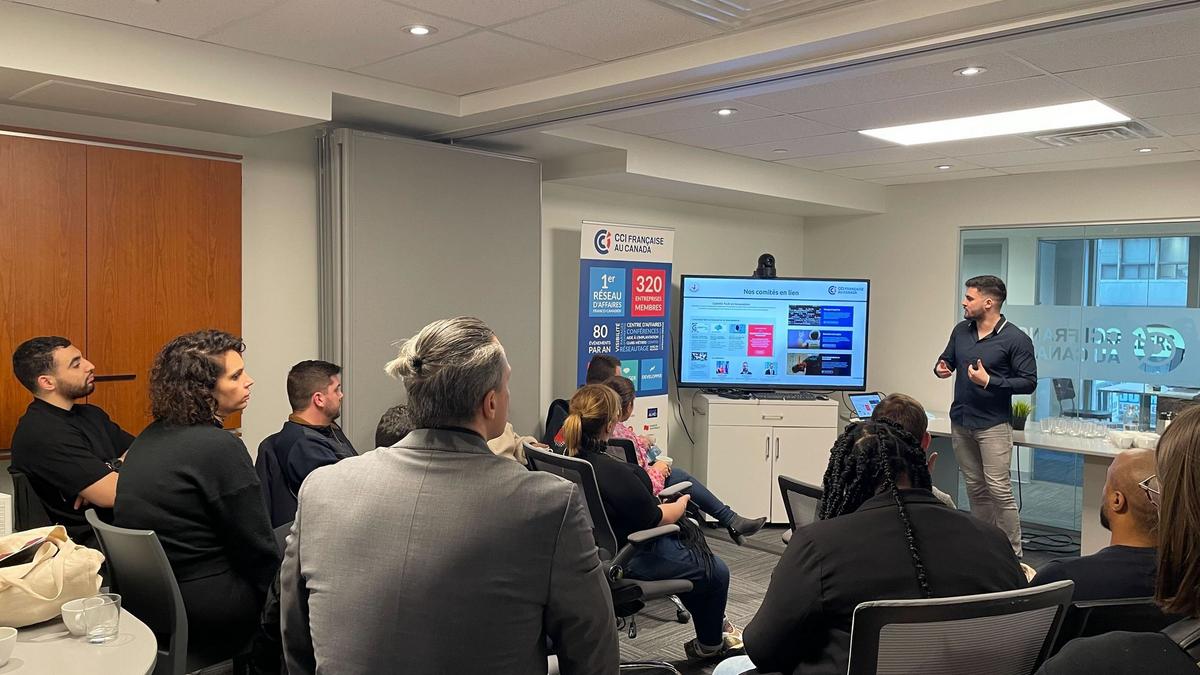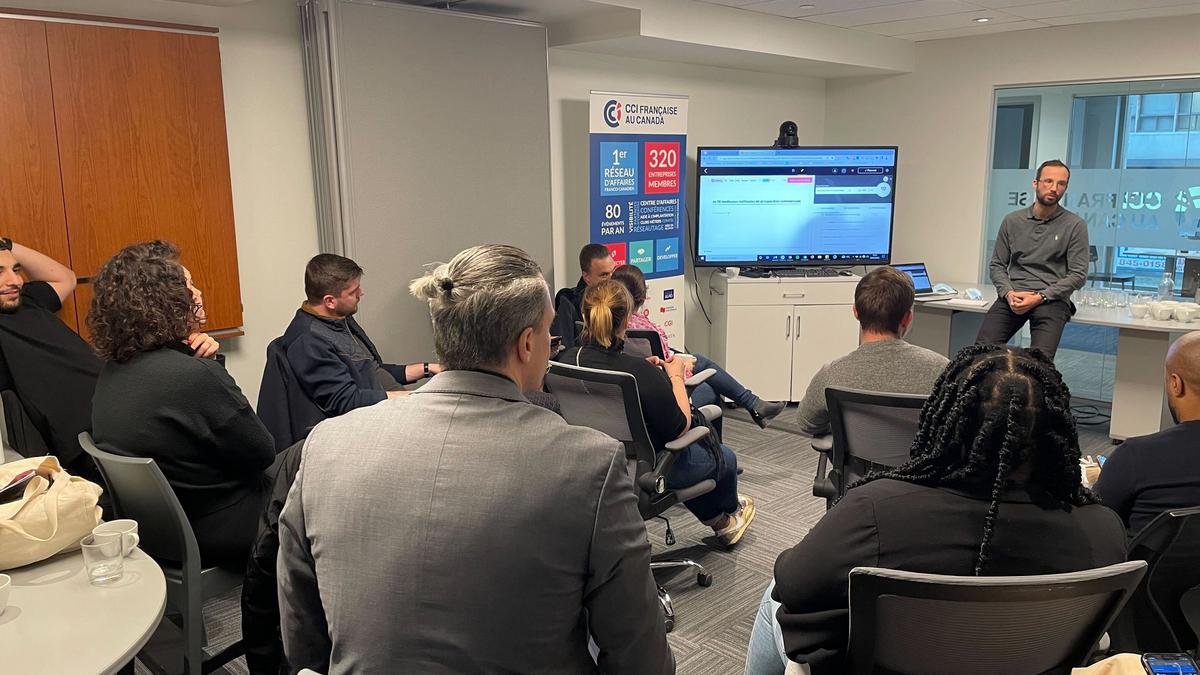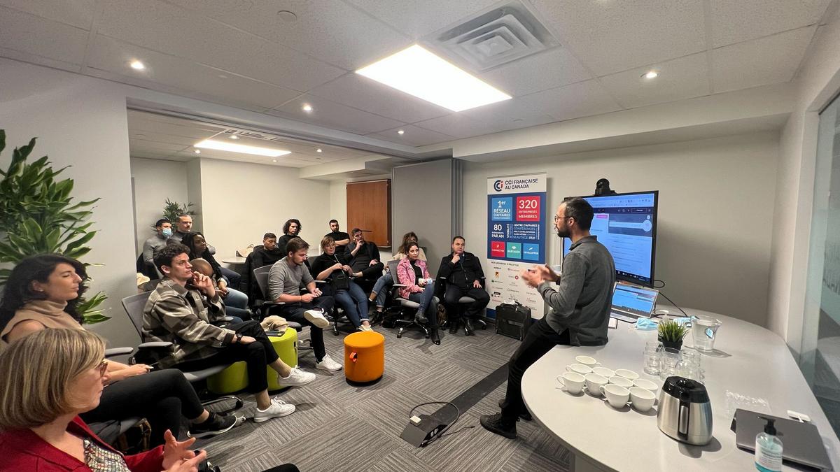 Dans une atmosphère conviviale, ce fut l'occasion d'avoir un partage d'expérience de la part de Corentin Mirande, Country Manager Canada chez Semji, et V.I.E au Centre d'Affaire de la CCIFC. Partageant son expérience en tant que français expatrié, chacun a pu poser ces questions sur l'immigration, l'intégration au Québec, ou encore sur les spécificités de l'écosystème franco-canadien.