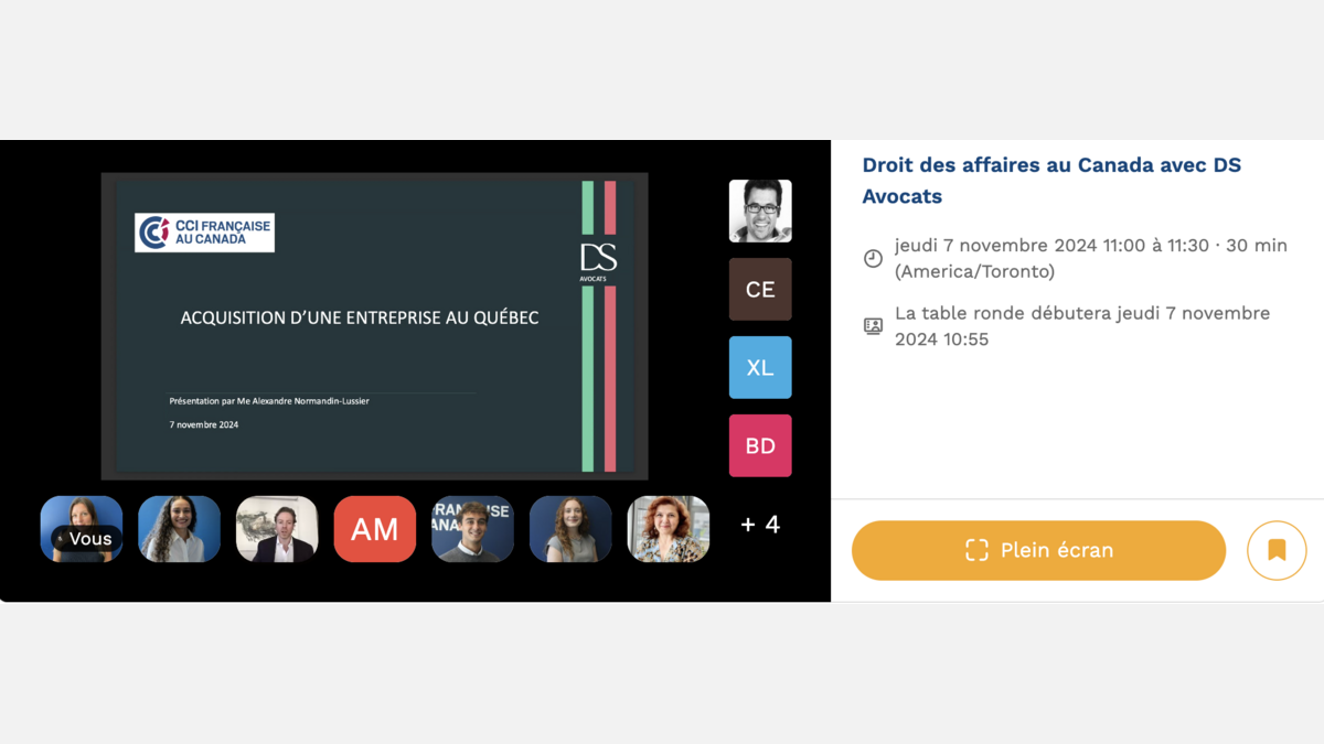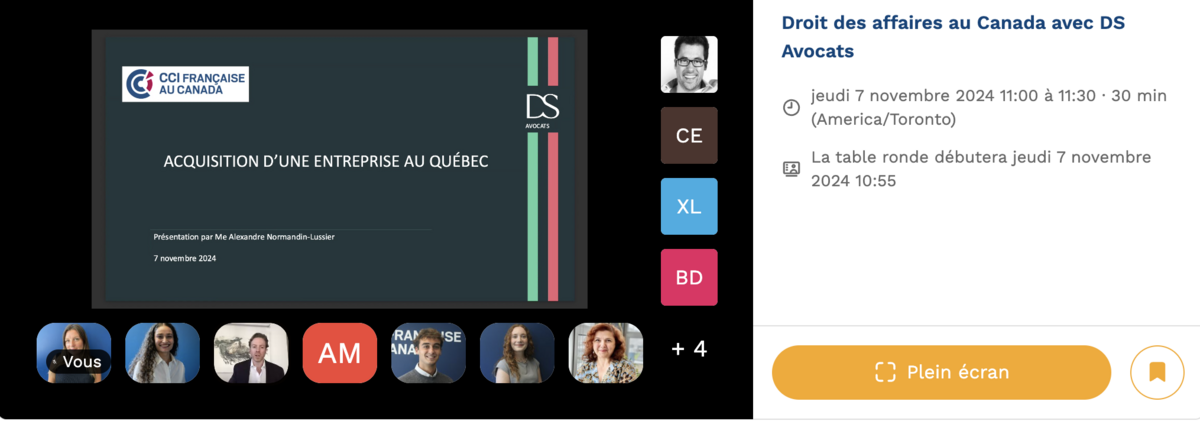 Ce jeudi 7 novembre, la CCI Française au Canada a organisé une édition spéciale de l'événement Vous lancer au Canada sur les Fusions & Acquisitions.