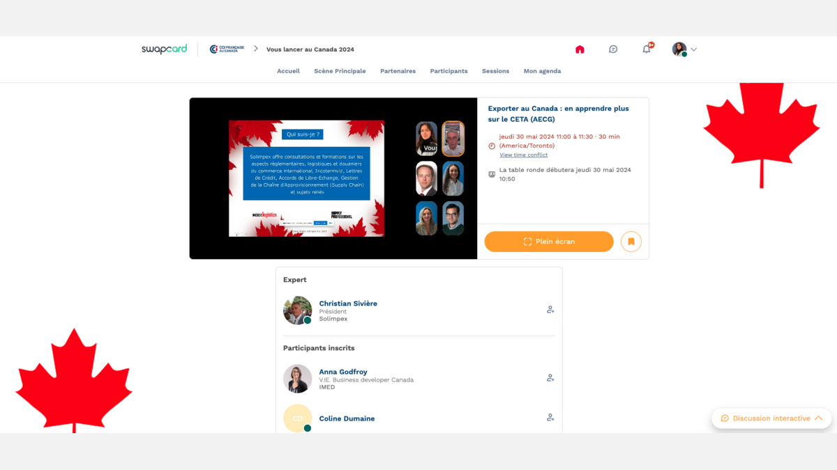 Introduit par la Directrice Générale de la CCIFC, Madame Christelle Rousseau et Morgan Larhant, Chef du service économique régional du Canada, Ambassadeur de France au Canada, les participants à cette demi-journée ont pu bénéficier de consultations individuelles avec nos experts, visiter les kiosques des experts partenaires et participer aux ateliers et aux tables rondes.