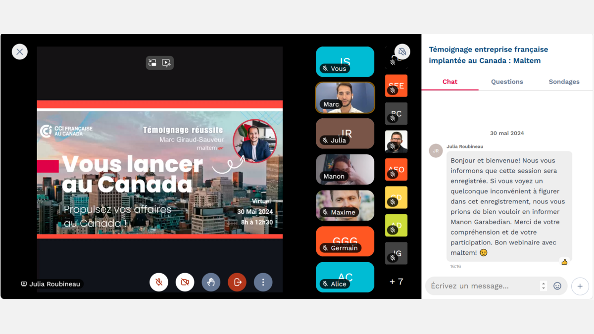 Les participants ont également pu bénéficier durant l’événement du témoignage inspirant de Marc Giraud-Sauveur, Co-fondateur et CEO Canada & USA chez Maltem.