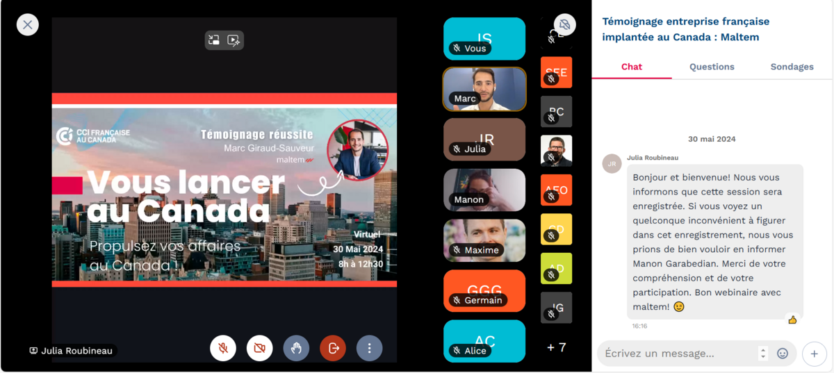 Les participants ont également pu bénéficier durant l’événement du témoignage inspirant de Marc Giraud-Sauveur, Co-fondateur et CEO Canada & USA chez Maltem.