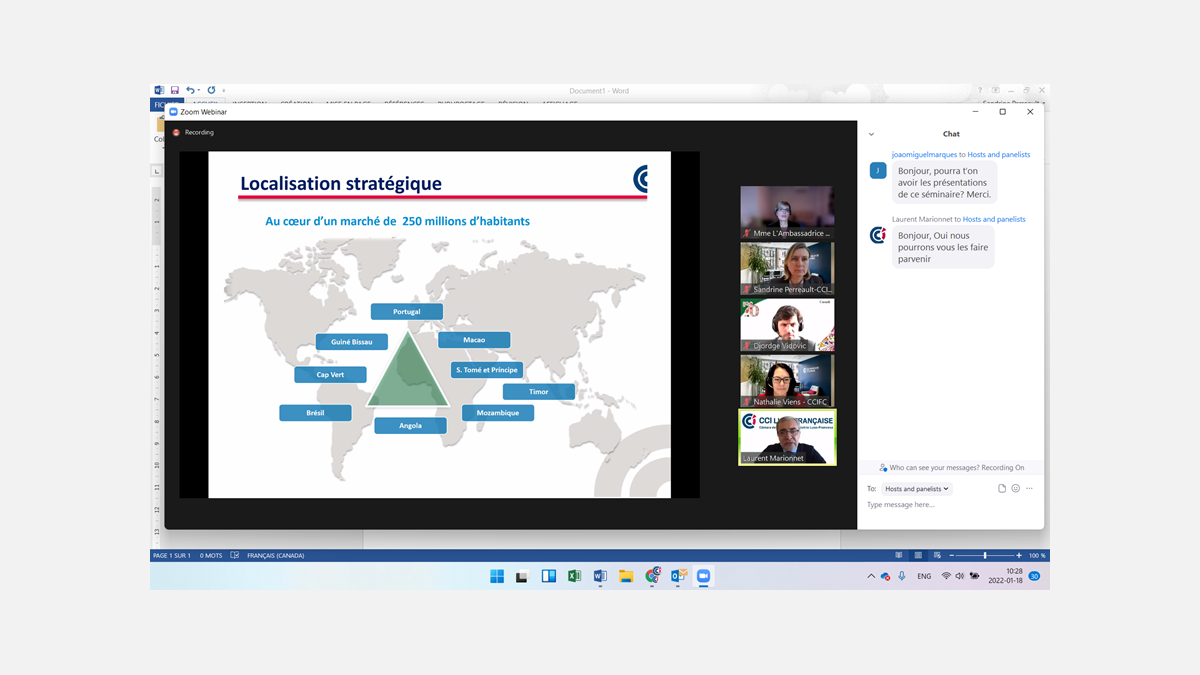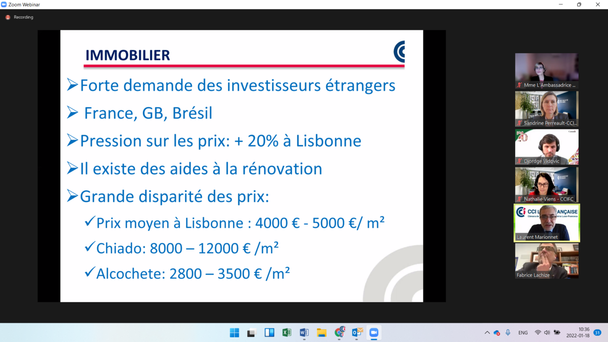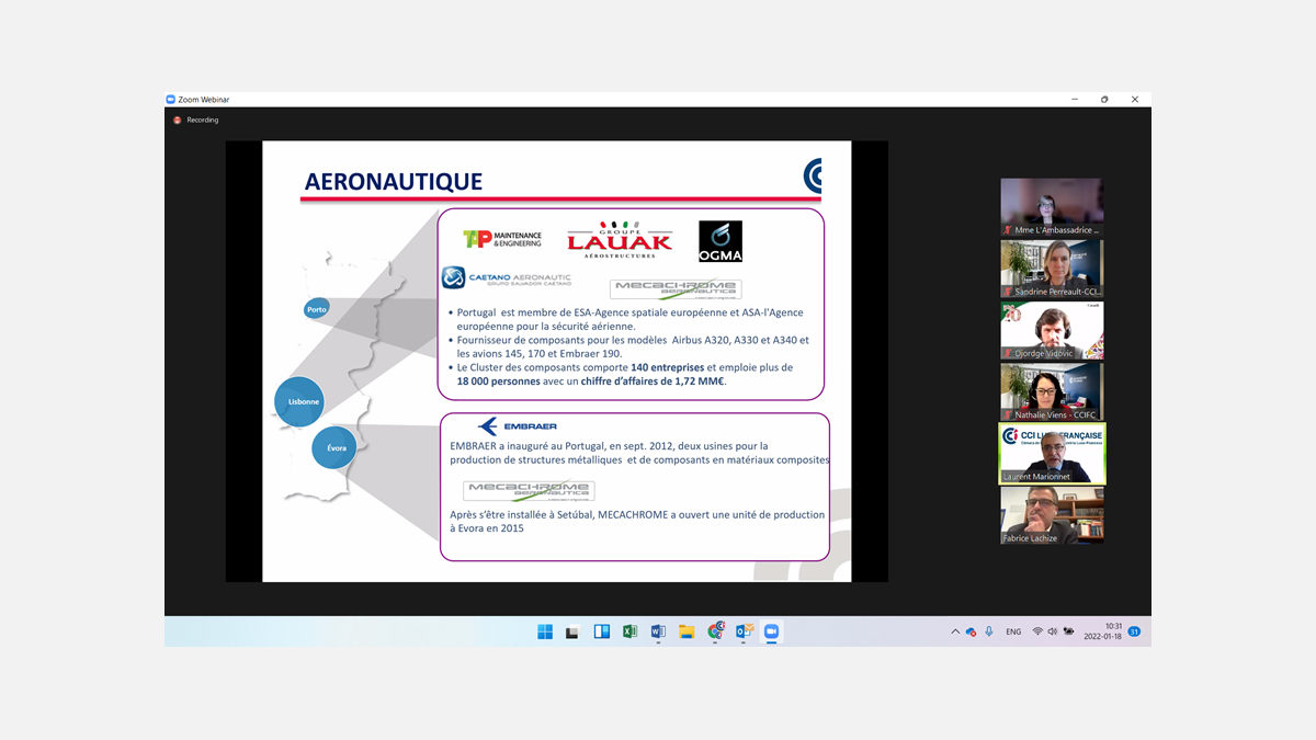Le mercredi 18 janvier, la CCIFC est intervenue lors du Webinaire Canada-Portugal organisé par la CCI Luso-française.