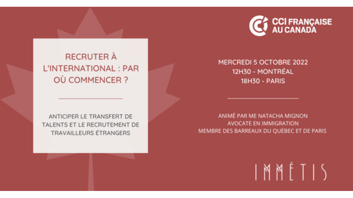 La CCI Française au Canada s'est associée au Cabinet d'Immigration Immétis pour un Webinaire sur le recrutement à l'international le 05 octobre !