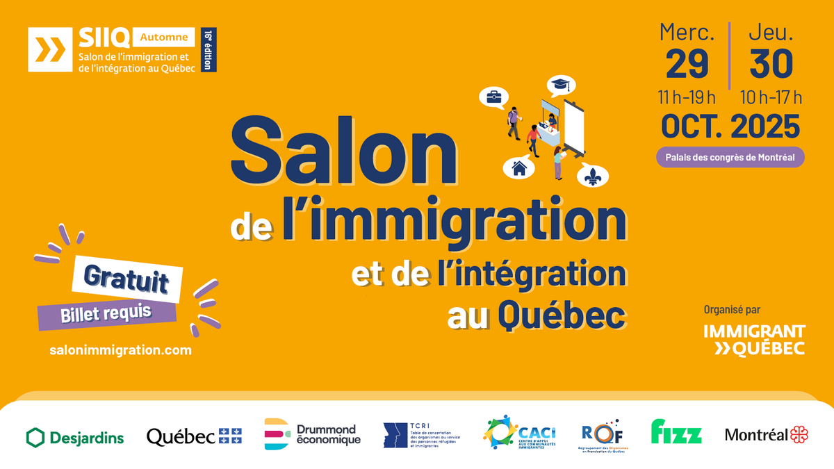 L’édition Automne 2025 du Salon de l’immigration et de l’intégration au Québec, organisée par Immigrant Québec, se tiendra les 29 et 30 octobre 2025 au Palais des congrès de Montréal.